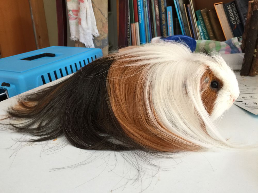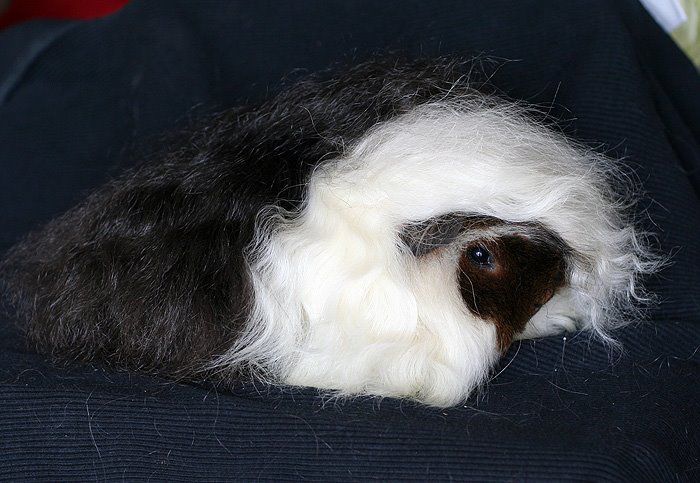 1 pár rozetta található a faron. Hosszú, sűrű, göndőr szőr jellemzi, amely a perui fajtához hasonlóan előre felé nő. A szőrzet a test felületén uszályt, a fejnél pedig sörényt alkot. Szőre rexoid jellegű. A faron lévő 2 forgó kivételével több forgó megjelenése hibának számít.